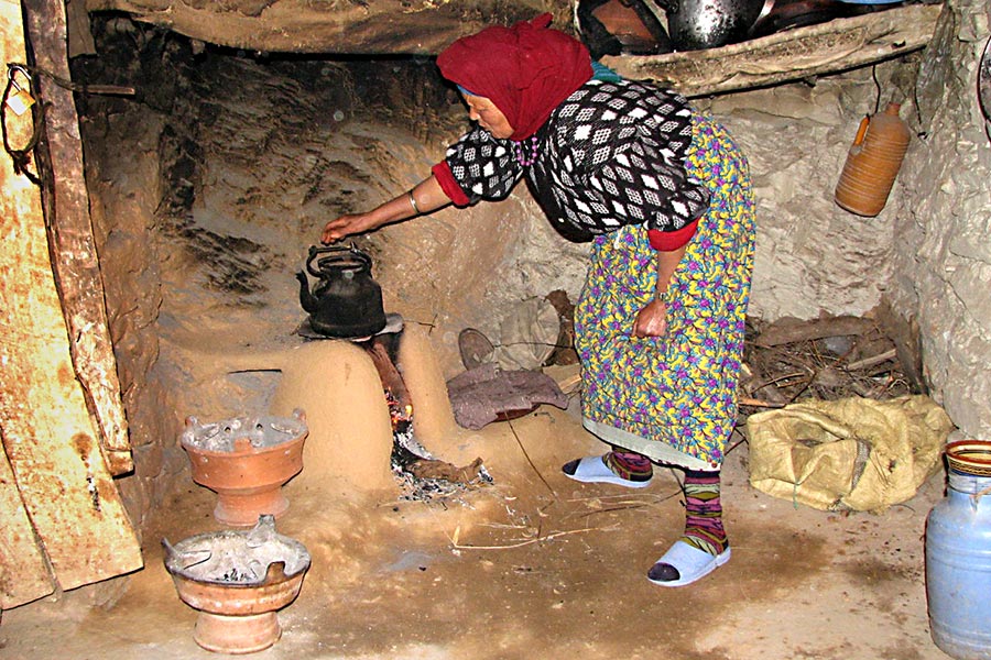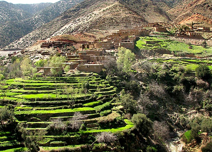After you arrive in Amizmiz, our starting point, we’ll travel the way the locals do: by foot or, for those who require it, by donkey. This provides lots of time for questions and discussion with your guide, who’ll do everything possible to make sure you leave with a good understanding of Berber village life. Walking also gives you the chance to notice small details—a wildflower, how Berber homes are constructed, certain rock formations—that would otherwise be lost on someone going by car. After passing over local foot paths and trails, we’ll make our way to a Berber home for tea or lunch. We’ll eat with the families themselves, and for overnight excursions you are encouraged to watch, or even help with, the preparation of meals. While enjoying meals and tea, you can feel free to engage your hosts and guide in discussion and more questions. Depending on the excursion, there may be time to explore the village more, see the local crops, or explore important nearby water sources like streams, irrigation canals, or springs. You’ll have plenty of opportunities for breaks while you’re walking, and also plenty of spontaneous interactions on the trails with locals who, no doubt, will know our guides and strike up impromptu conversations. Eventually, you will return to Amizmiz by a set of trails different from the ones you first took.