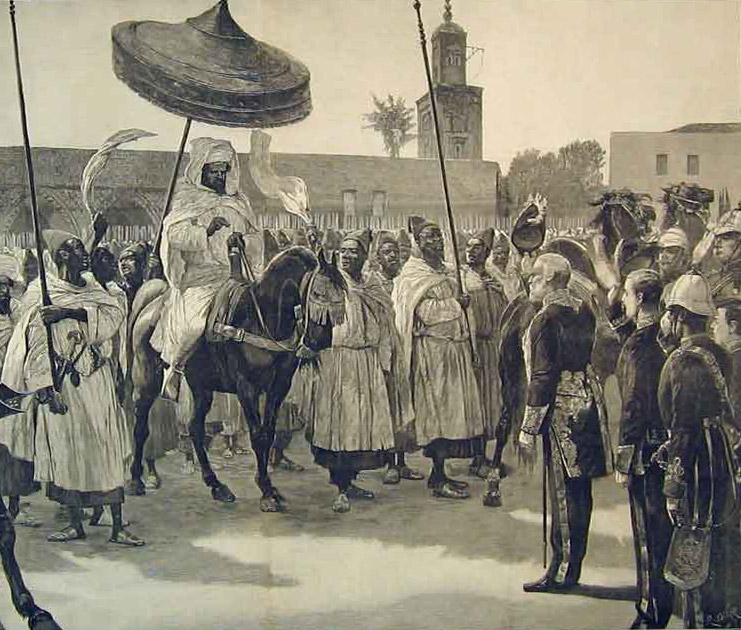 A fellow of the Royal Geographical Society, Walter B. Harris was a member of an official 1887 diplomatic mission to the Sultan of Morocco in Marrakech (depicted at right). In his book The Land of an African Sultan, published 1889, Harris details his time in Marrakech and and also some of the travels that were taken by members of the diplomatic mission.
